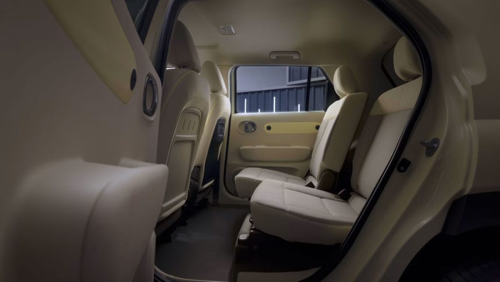 Unutrašnjost Hyundai INSTER-a nije samo elegantna i moderna, već je i vrlo praktična: neprekinuti prednji red sjedala nudi posebno lak pristup vozačevim i suvozačevim sjedalima. Sva sjedala – uključujući vozačevo – mogu se preklopiti, a sjedala djeljiva u omjeru 50:50 u drugom redu također se mogu pomicati po dužini.